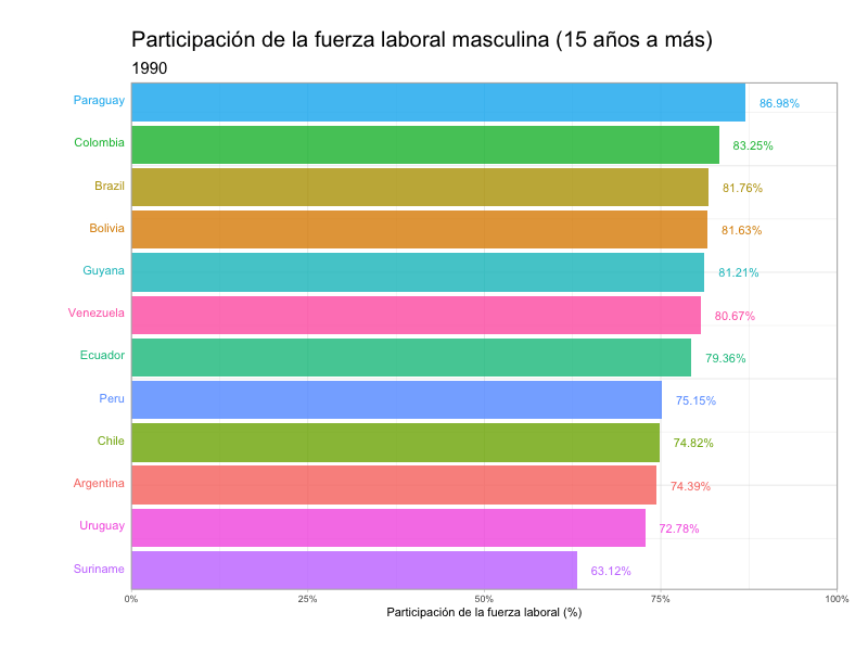 Participación laboral masculina en América del Sur